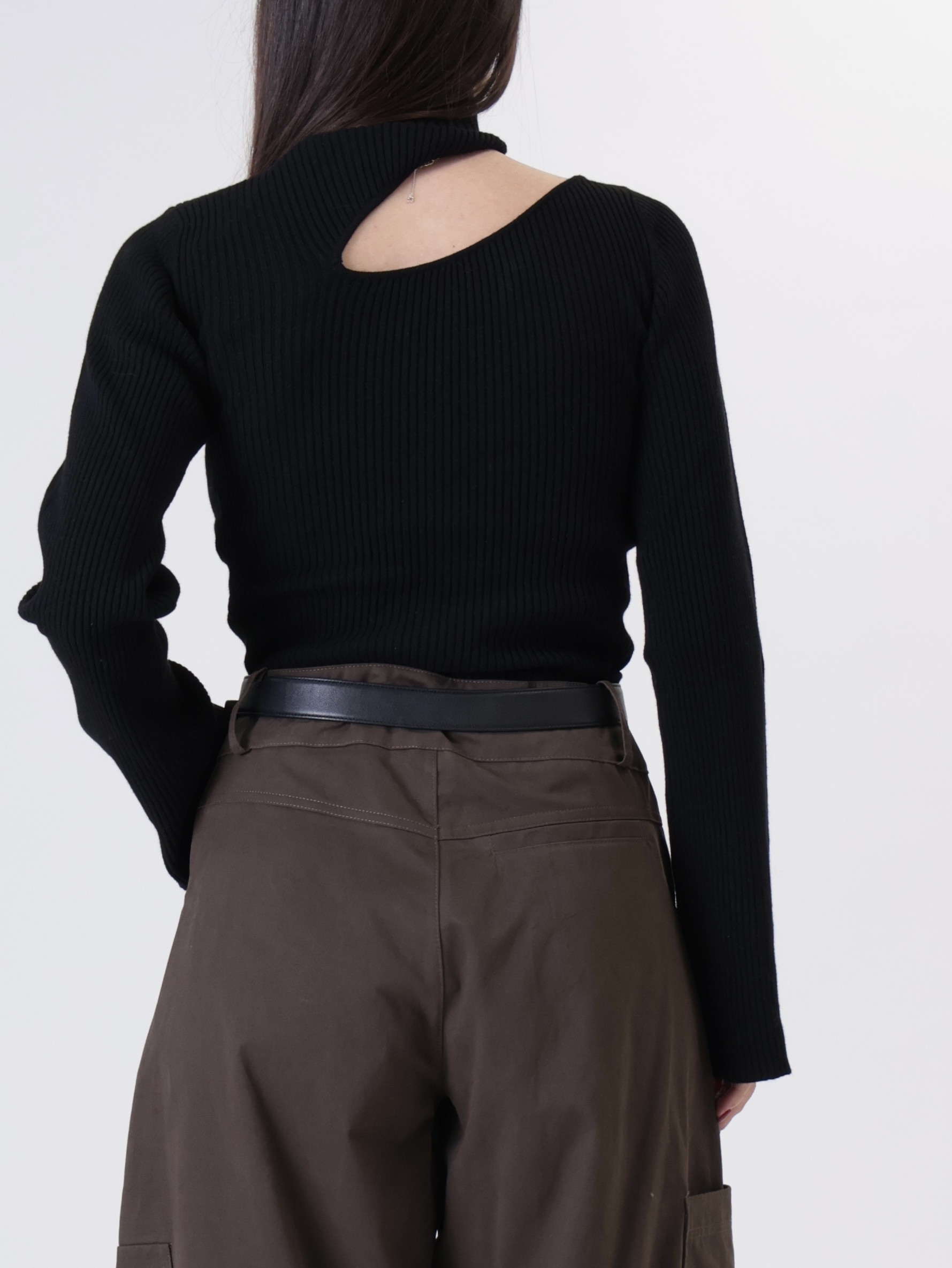 Maglia costine cut out nero