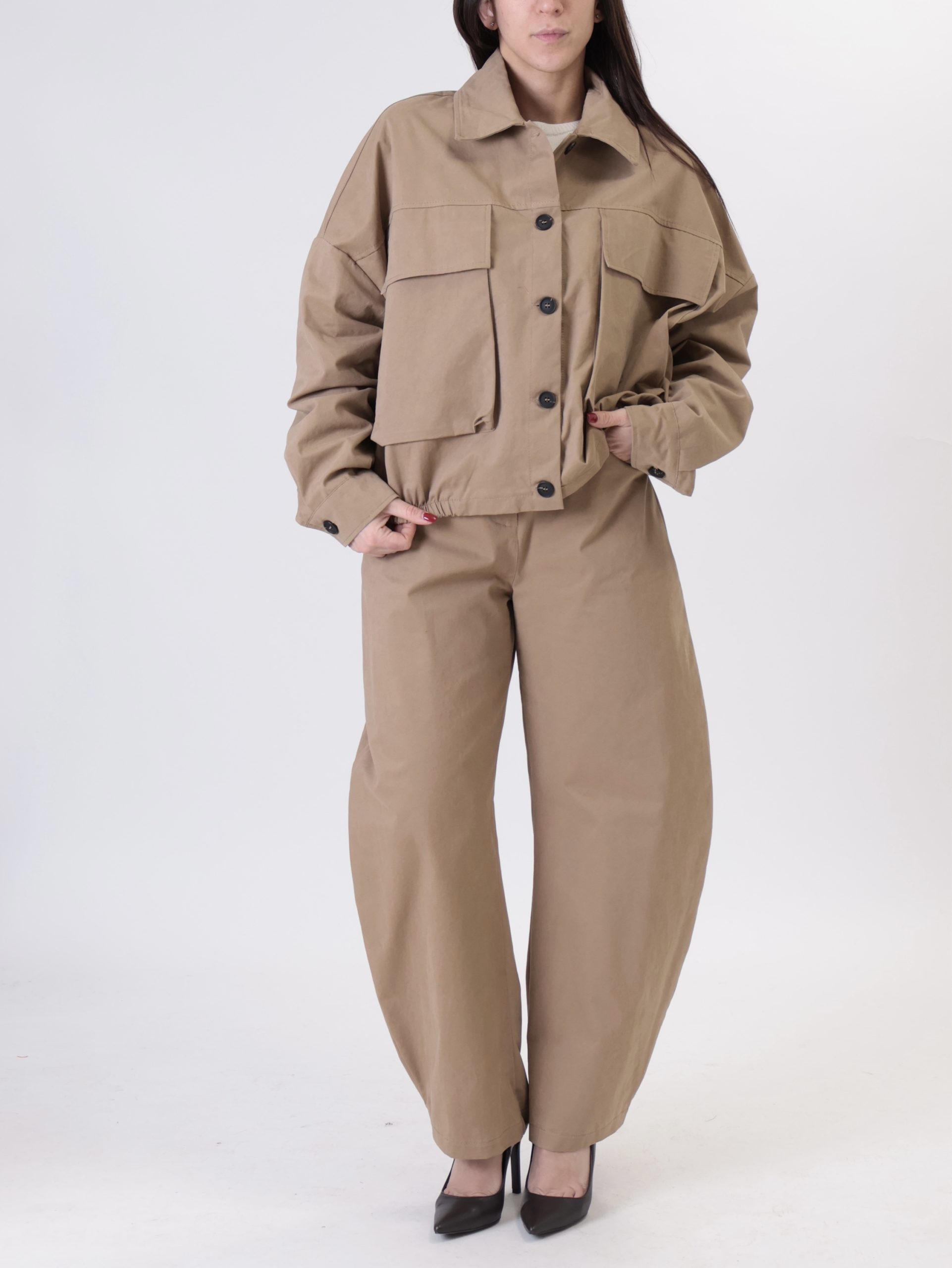 Bomber bottoni cammello