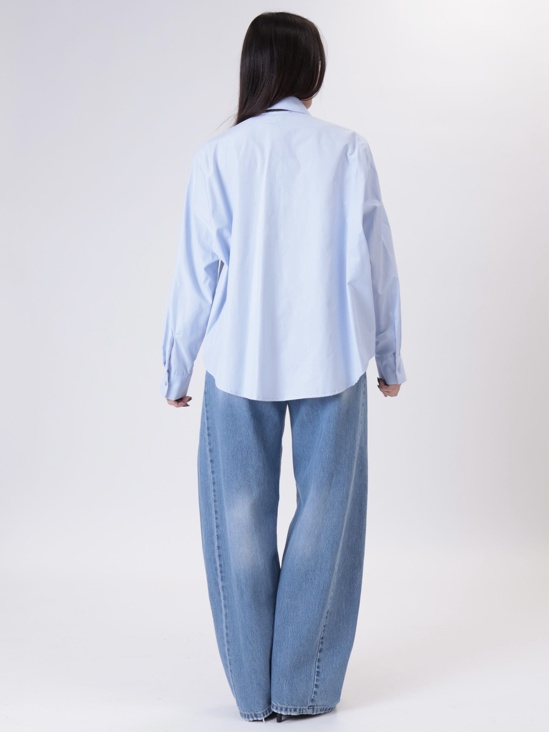 Camicia con cravatta crochet celeste