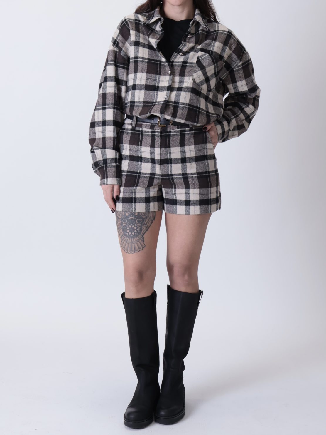Camicia quadro bottone gioiello moro