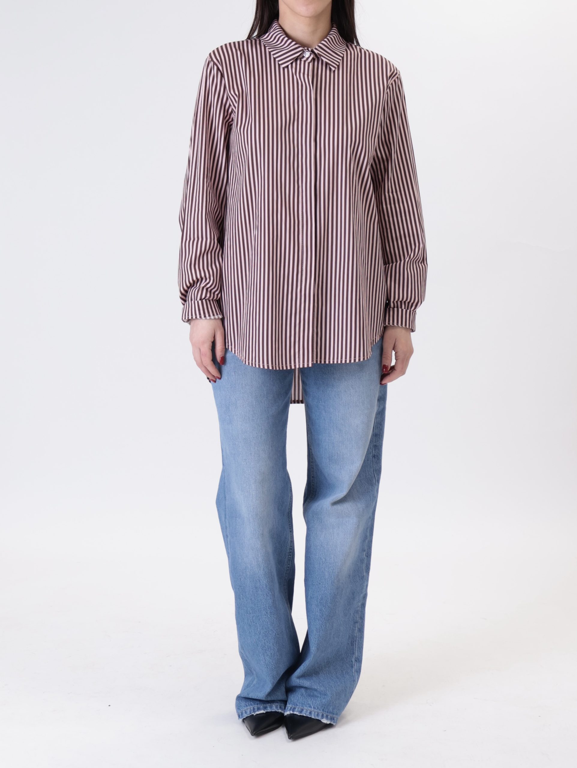 Camicia rigata rosa/moro