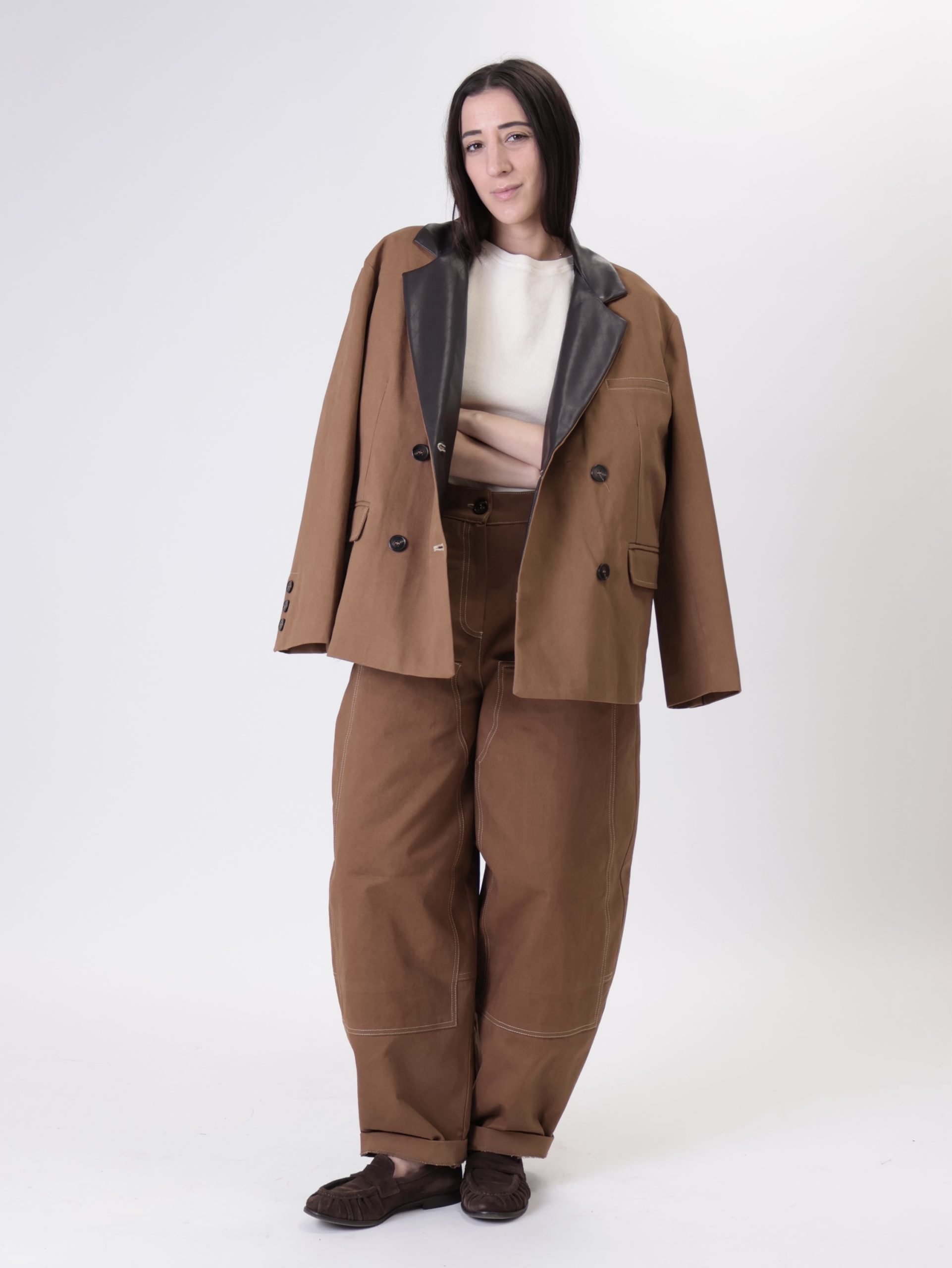 Giacca bottega doppio petto tabacco