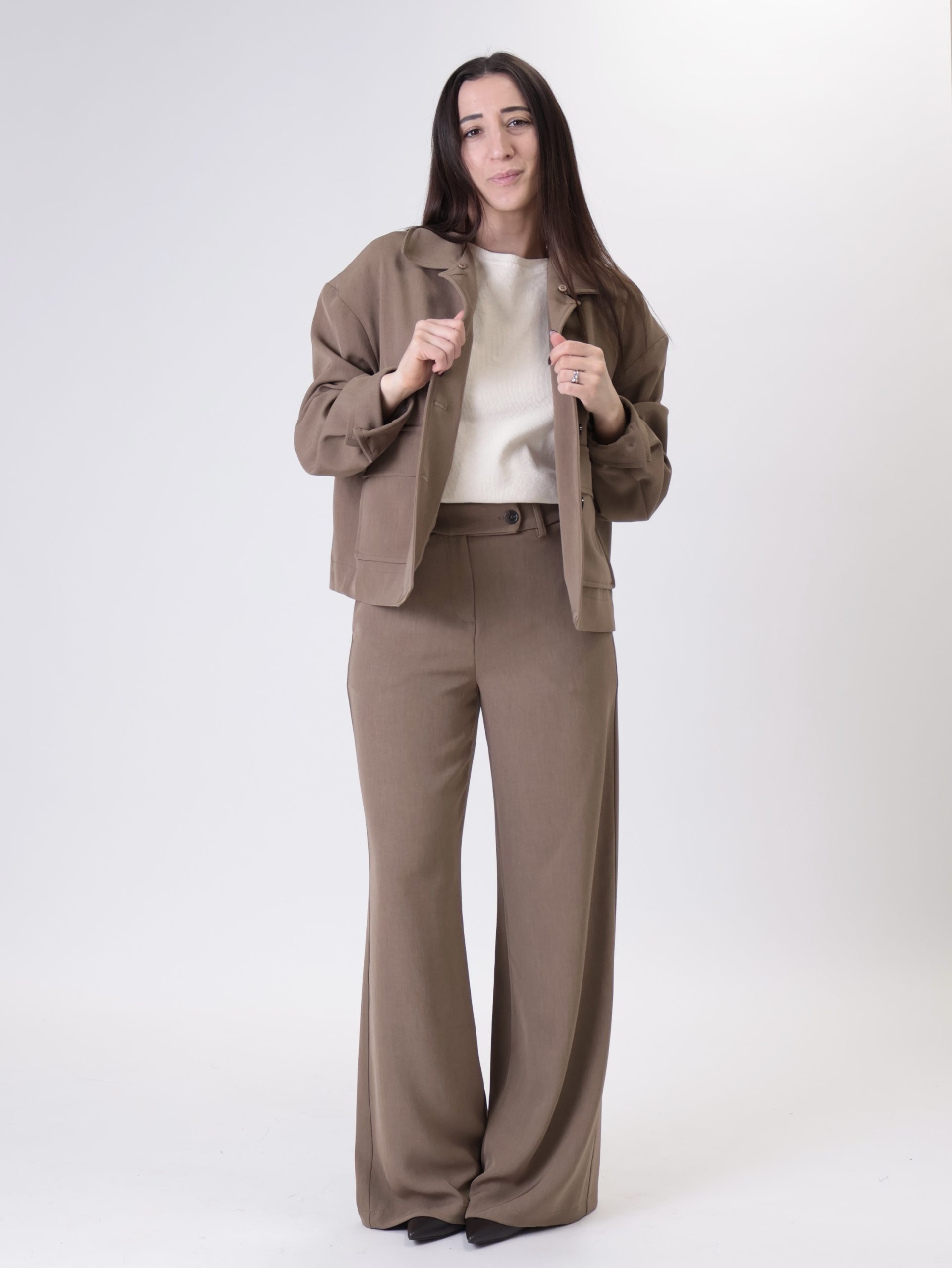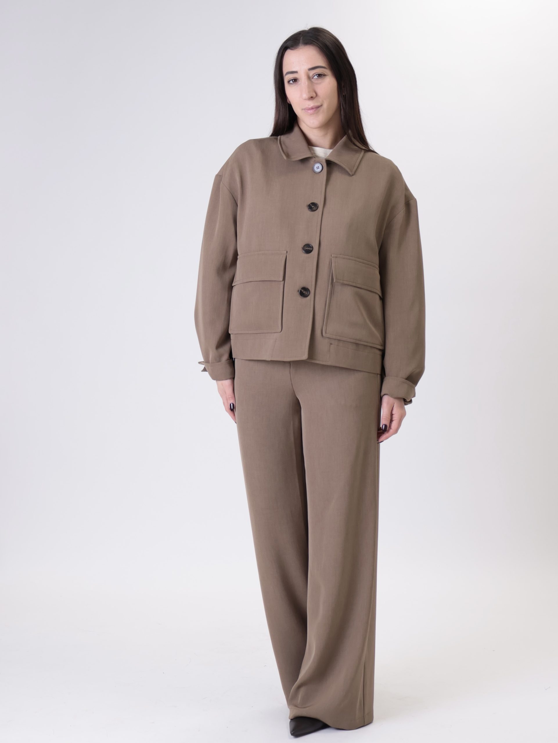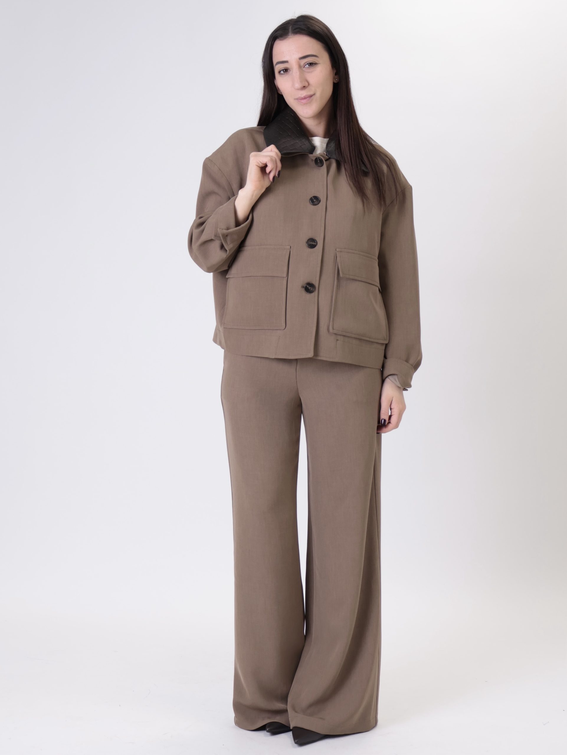Giacca mira orli ecopelle moro