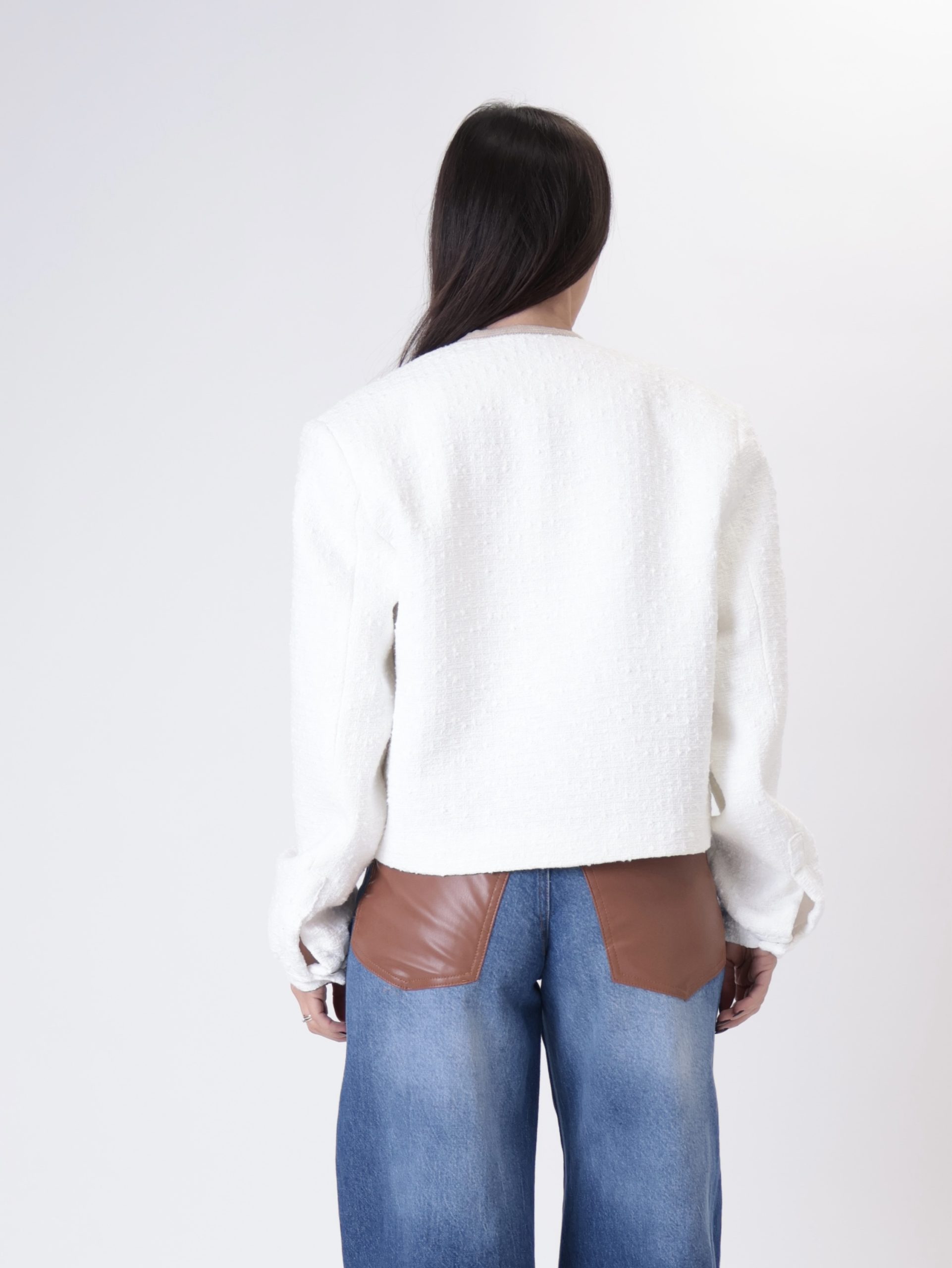 Giacca scollo V bianco/corda