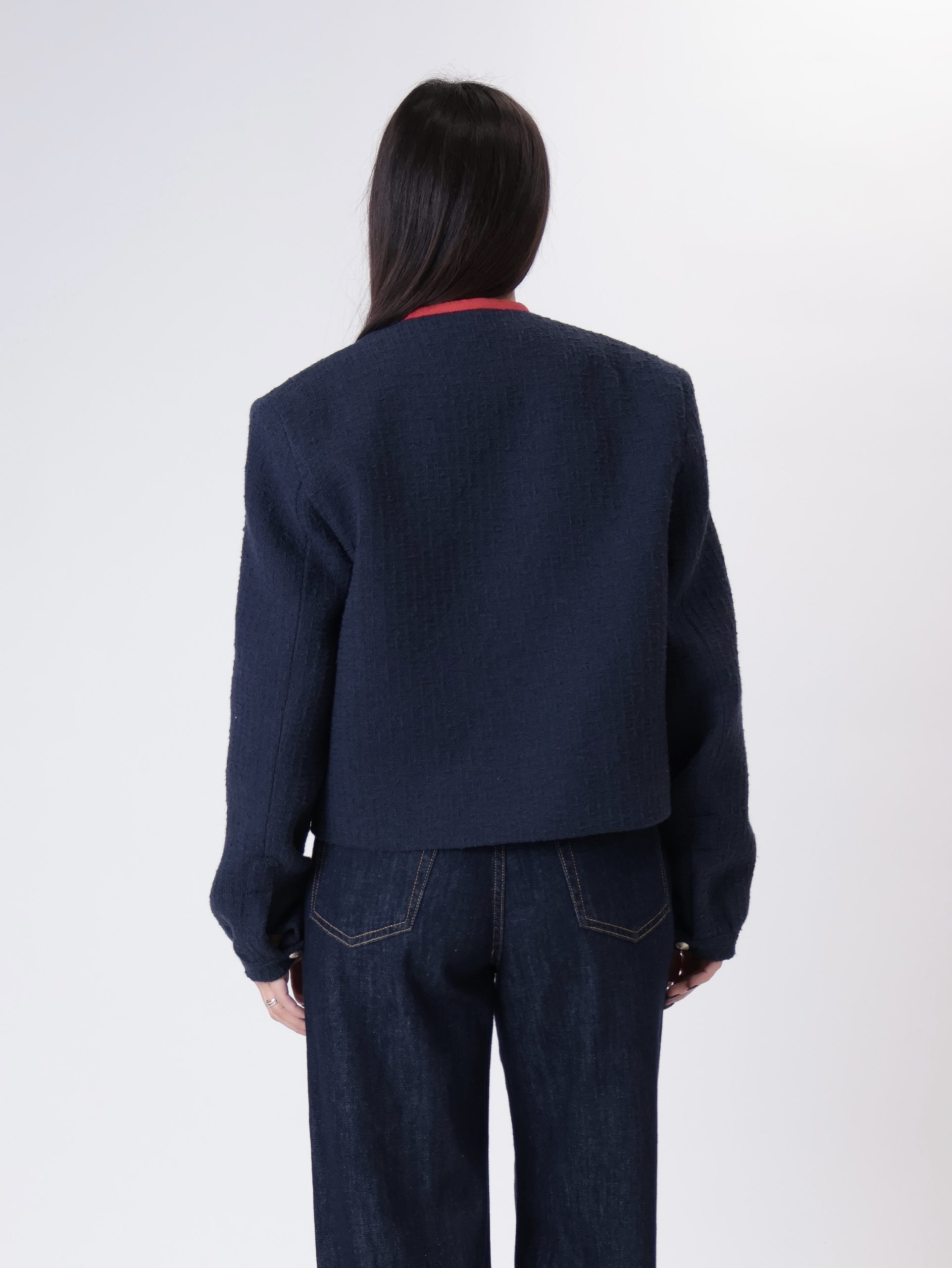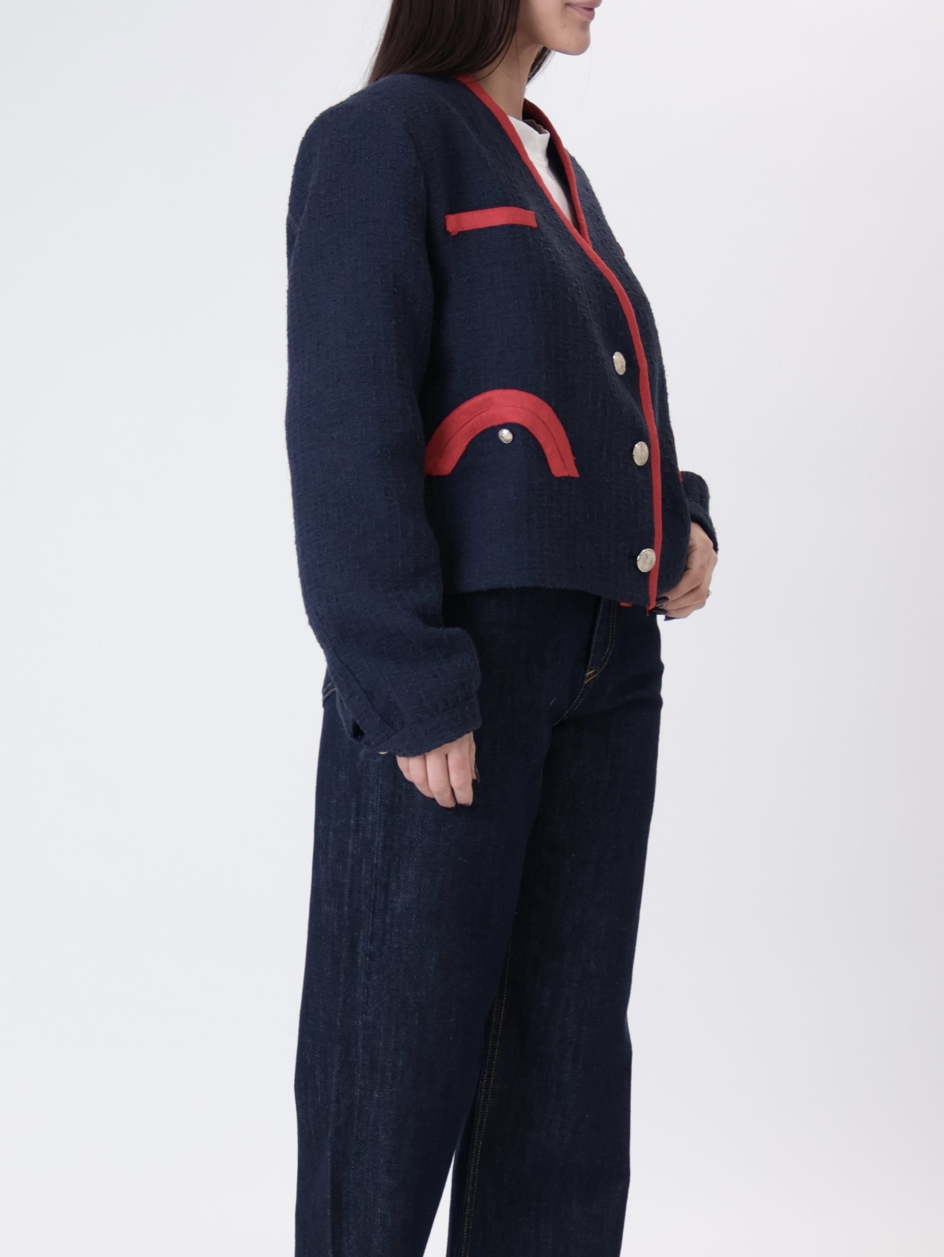 Giacca scollo V blu/rosso