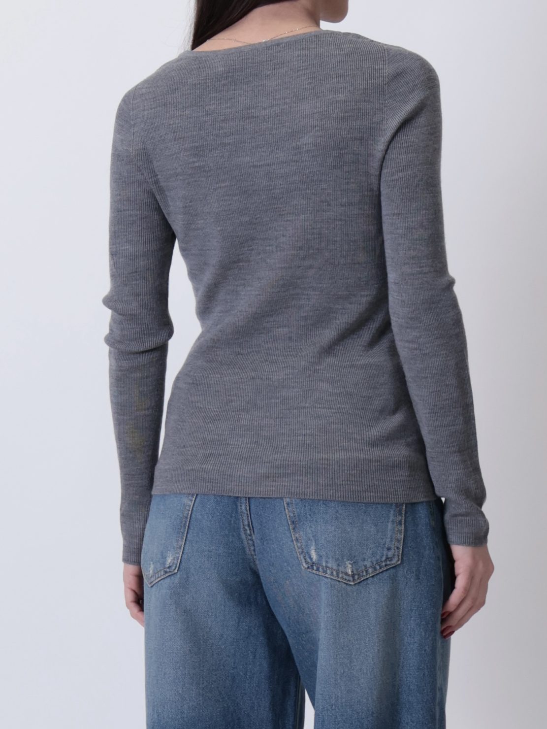 Maglia scollo madonna lana merino grigio