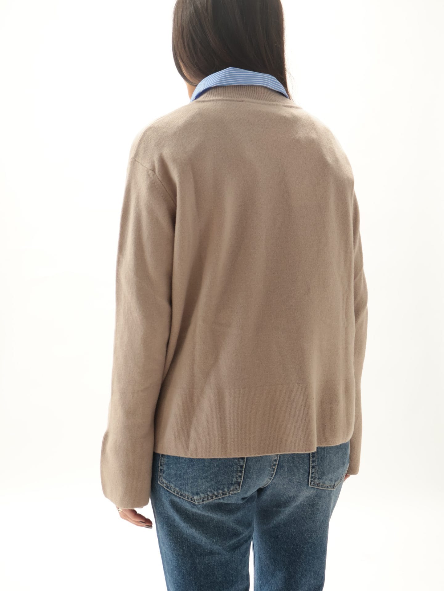 Maglione scollo V 100% lana vergine beige