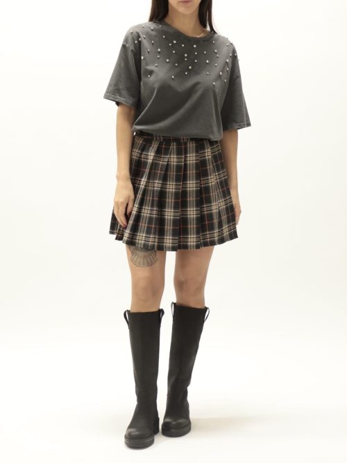 Minigonna check nero/arancio