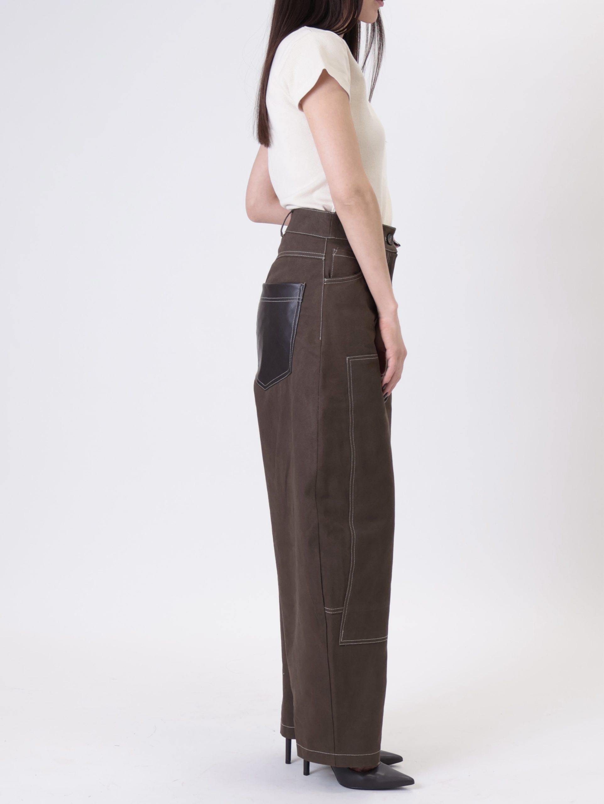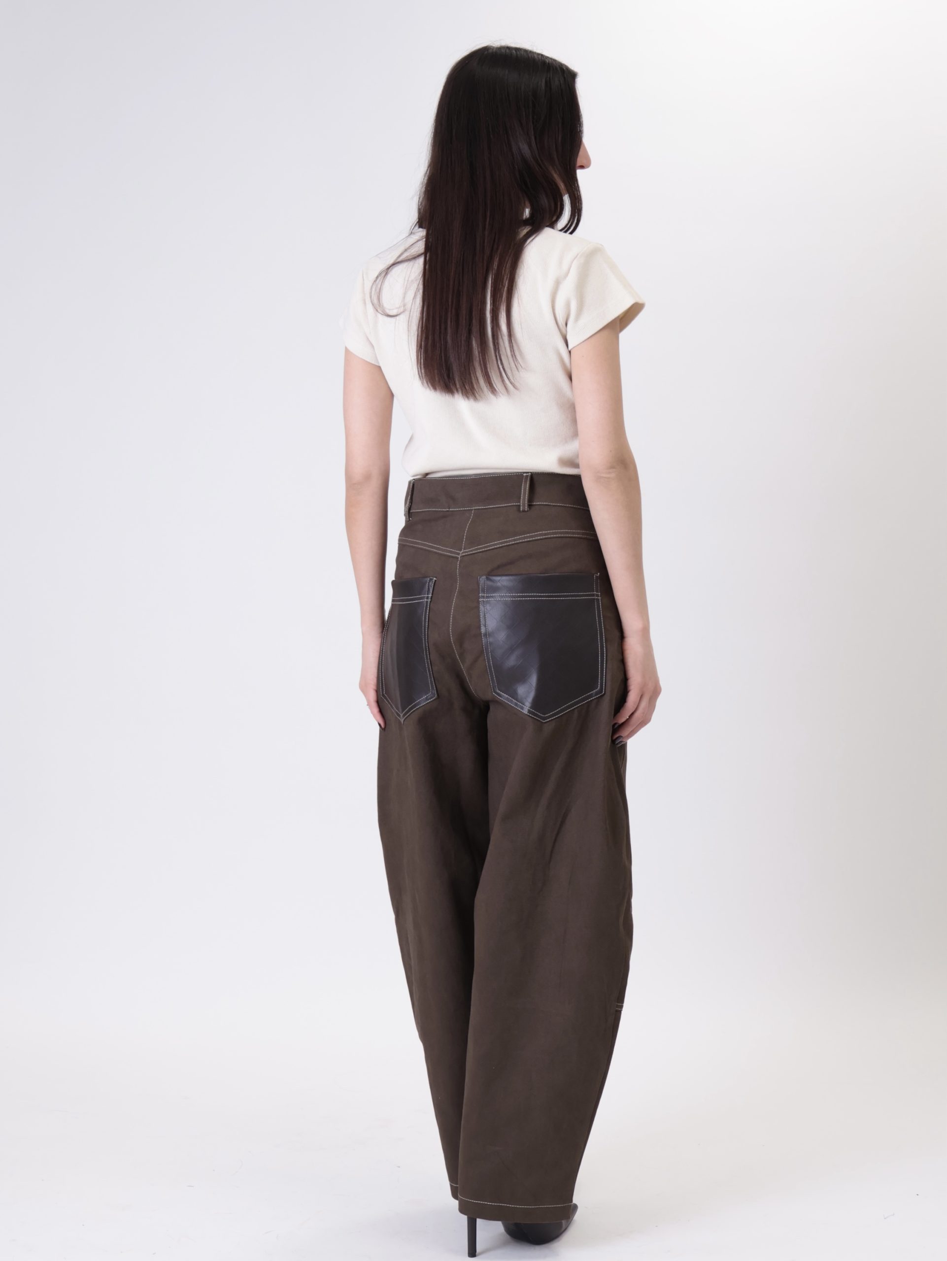 Pantalone bottega tasche ecopelle moro