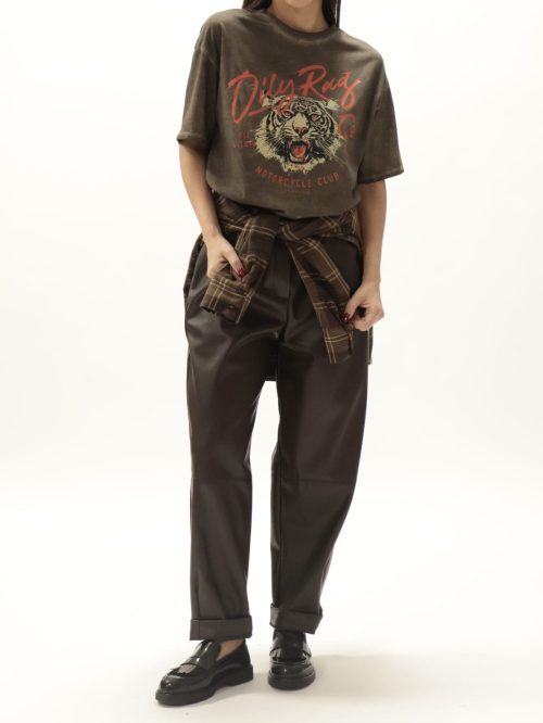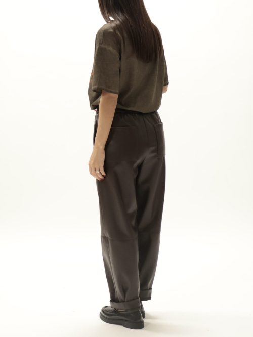 Pantalone ecopelle elastico in vita moro