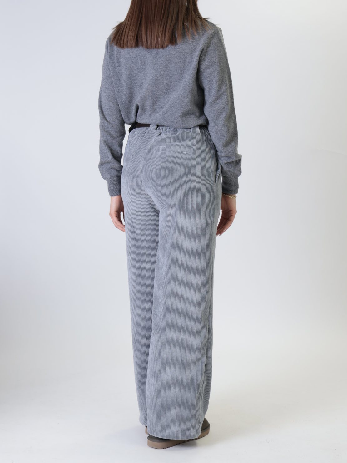 Pantalone velluto cintura grigio