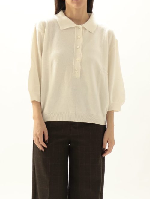 Polo in maglia panna