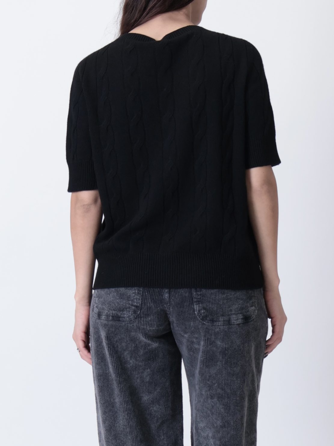 Pullover treccia manica corta nera